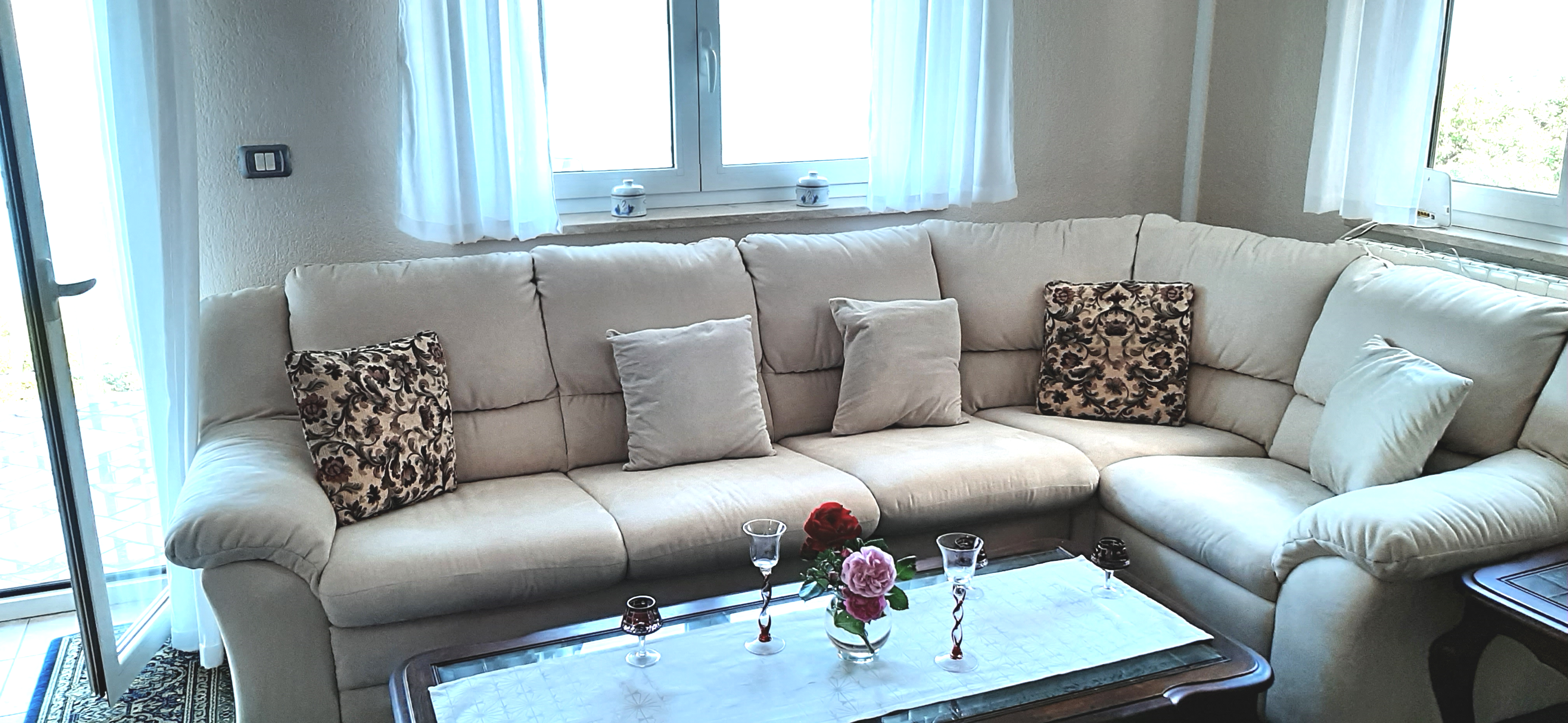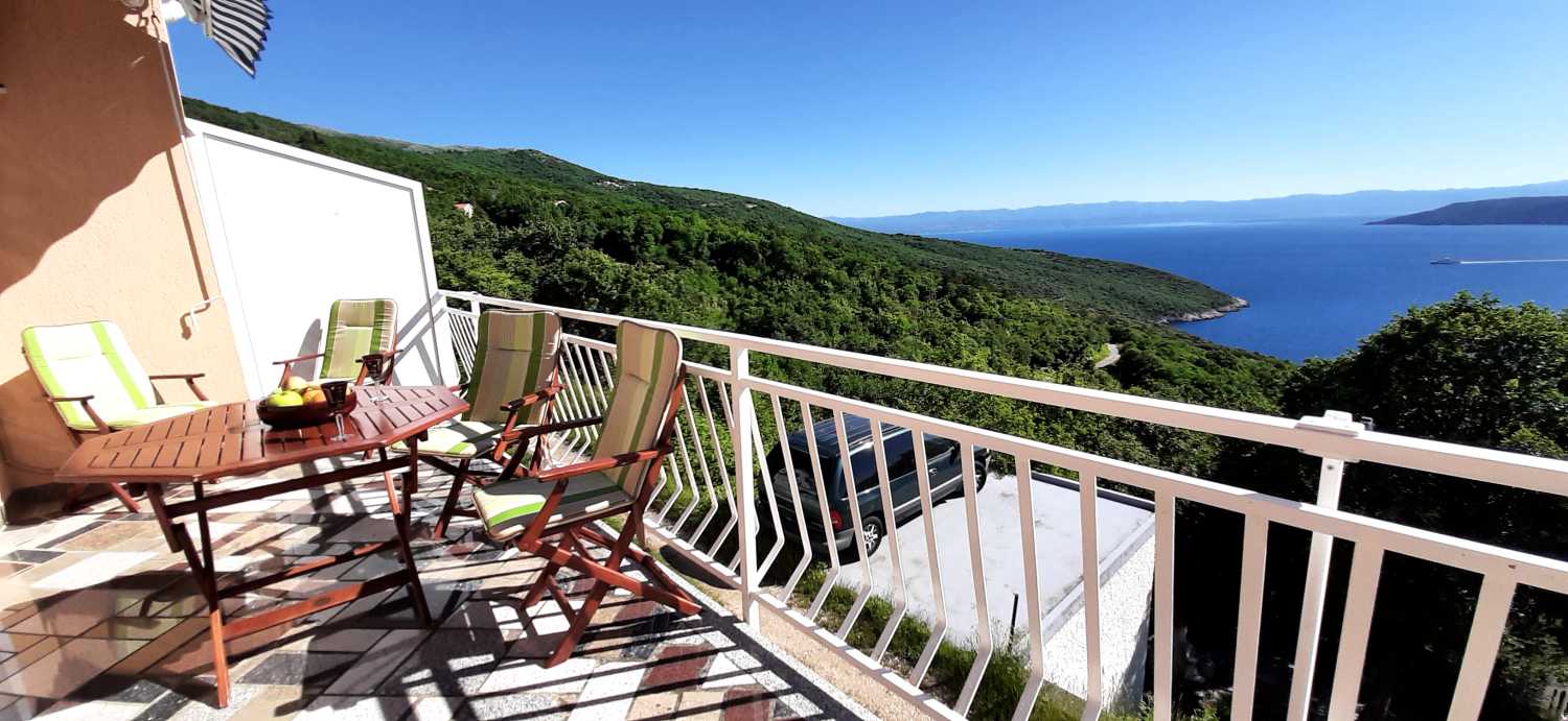 Für 2-4 Personen: Schlafzimmer mit Doppelbett, Schlafsofa im Wohnzimmer, Bad mit Dusche und Waschmaschine, Küche mit Ofen und Spülmaschine, Kaffeeautomat, Mikrowelle, Wohn- und Essbereich, Balkon, Veranda mit Grill.